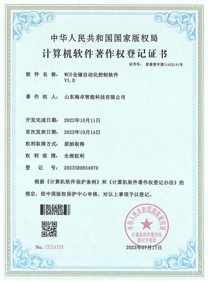 仓储自动化控制软件 软件著作权登记证书