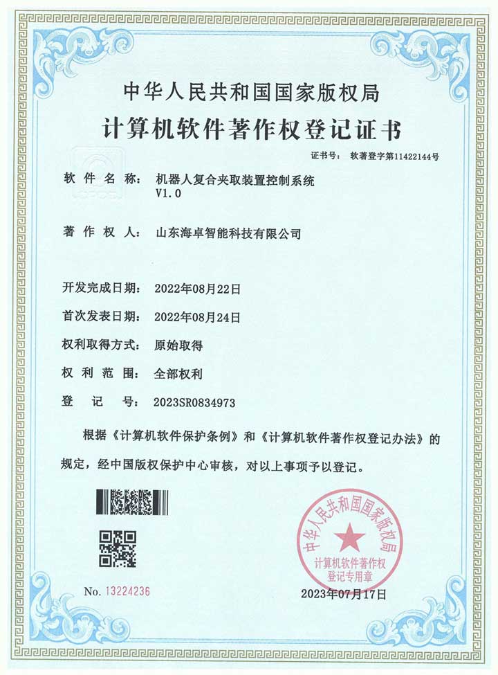 机器人复合夹取装置控制系统 软件著作权登记证书